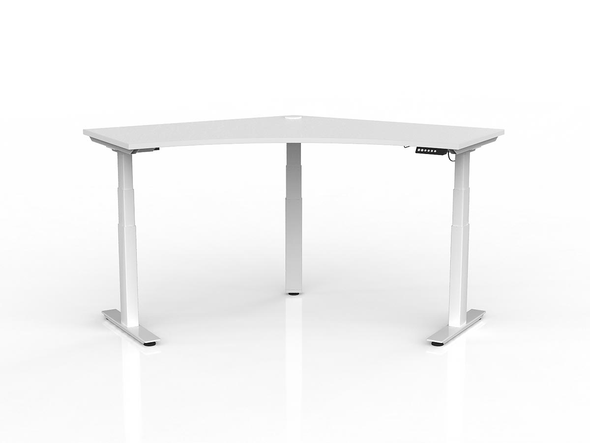 120° angled corner configuration maximises desk surface in a space-efficient footprint