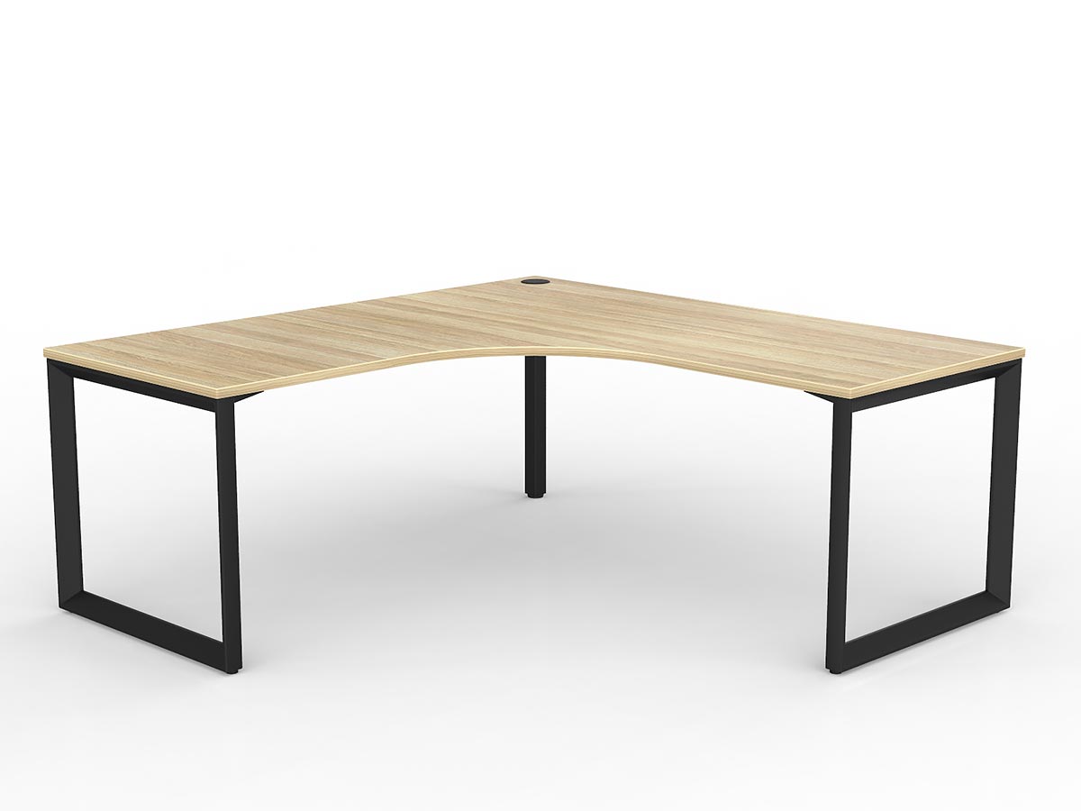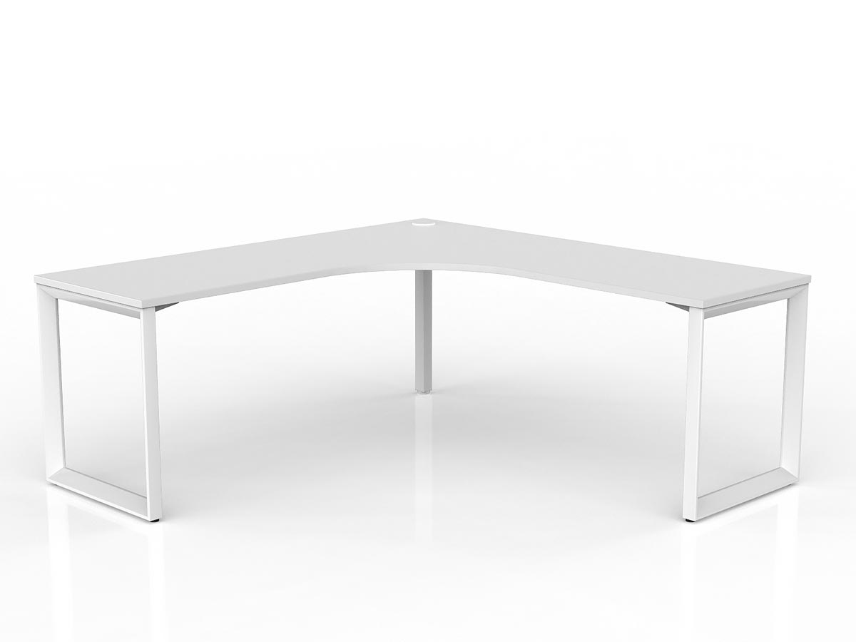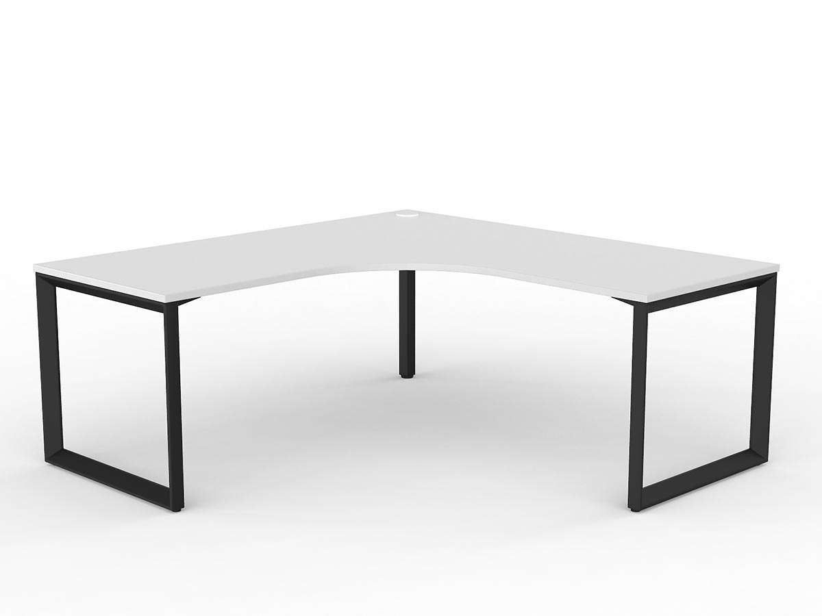 The Anvil desking range is a corporate classic featuring a distinctive 50×50mm triangular frame profile that delivers a bold aesthetic as much as a functional workspace. Strong, stable, and modular, each Anvil desk features a fixed height of 730mm with 30mm foot adjustment and is available in a virtually unlimited number of configurations — from straight single workstations through to complex multi-user pod setups. This 90° corner configuration providing a classic L-shaped individual workstation with primary desk and angled return. provides a 90° corner (single user) arrangement.