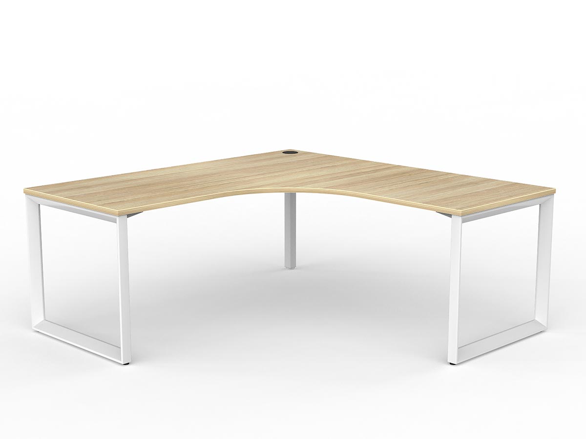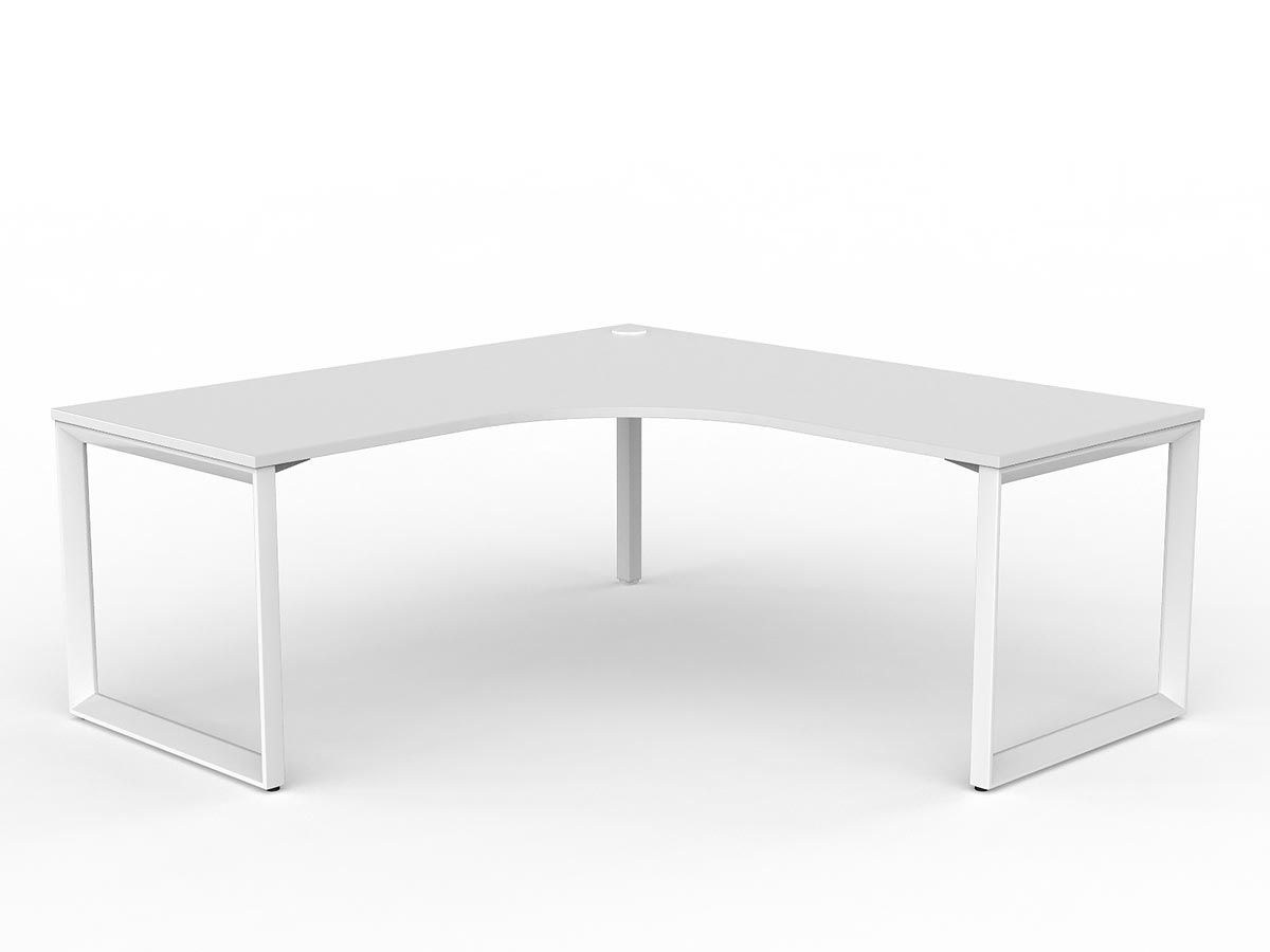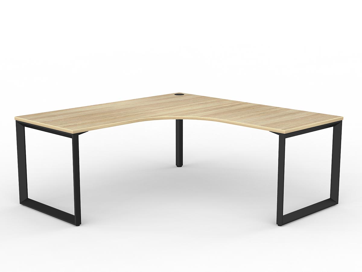 The Anvil desking range is a corporate classic featuring a distinctive 50×50mm triangular frame profile that delivers a bold aesthetic as much as a functional workspace. Strong, stable, and modular, each Anvil desk features a fixed height of 730mm with 30mm foot adjustment and is available in a virtually unlimited number of configurations — from straight single workstations through to complex multi-user pod setups. This 90° corner configuration providing a classic L-shaped individual workstation with primary desk and angled return. provides a 90° corner (single user) arrangement.