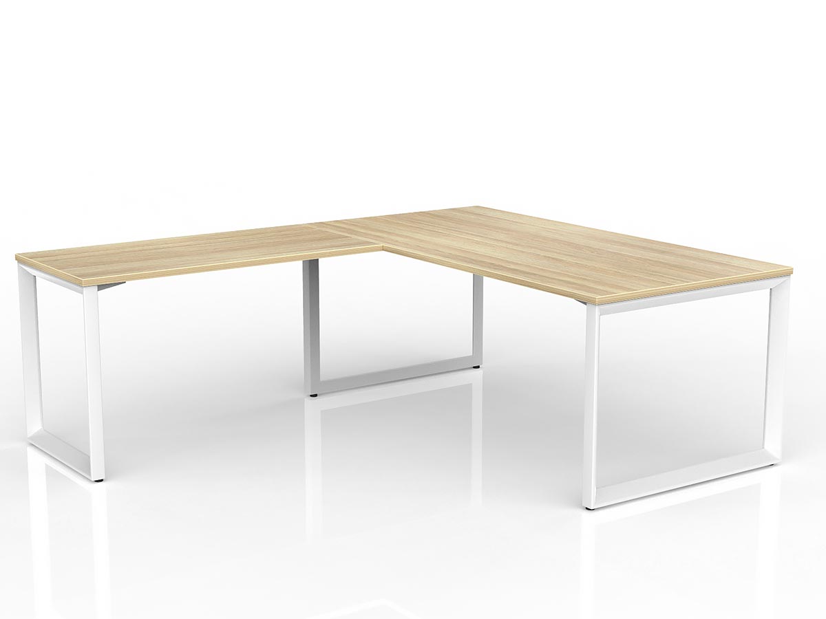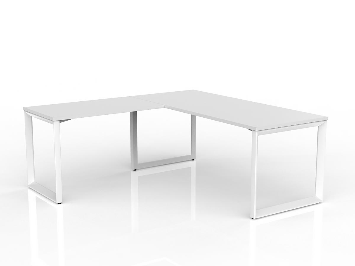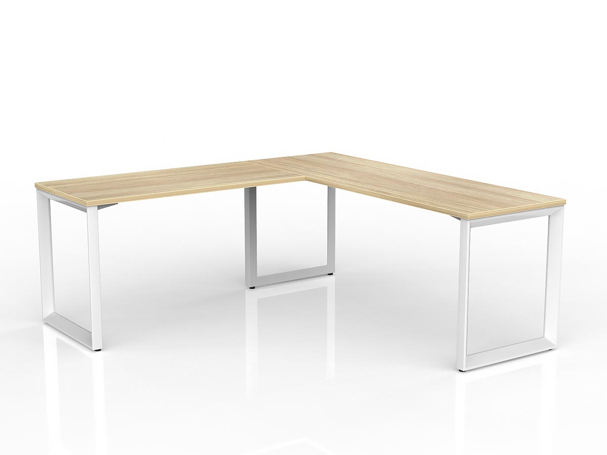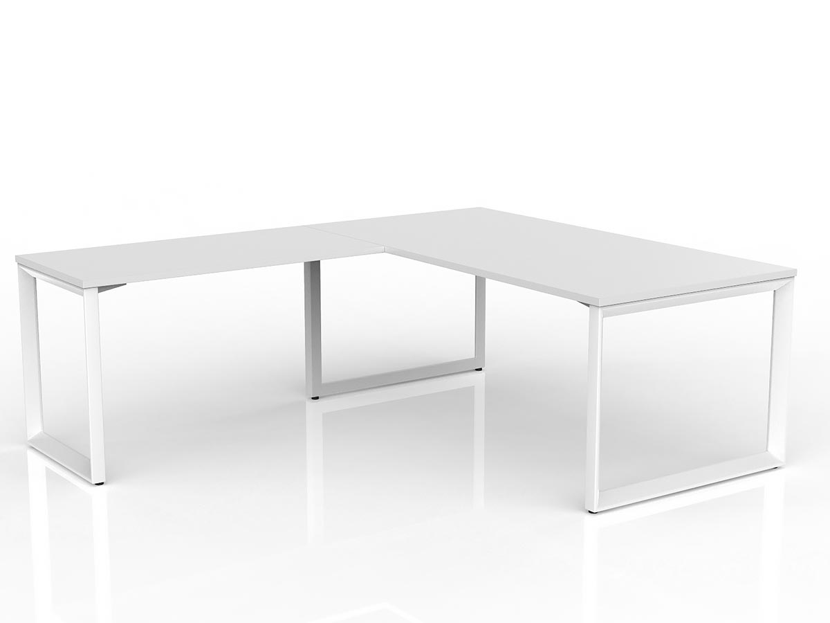 The Anvil desking range is a corporate classic featuring a distinctive 50×50mm triangular frame profile that delivers a bold aesthetic as much as a functional workspace. Strong, stable, and modular, each Anvil desk features a fixed height of 730mm with 30mm foot adjustment and is available in a virtually unlimited number of configurations — from straight single workstations through to complex multi-user pod setups. This Single-user workstation with an attached side return, providing additional desk surface for dual monitors or task separation. provides a Straight desk with return (single user) arrangement.
