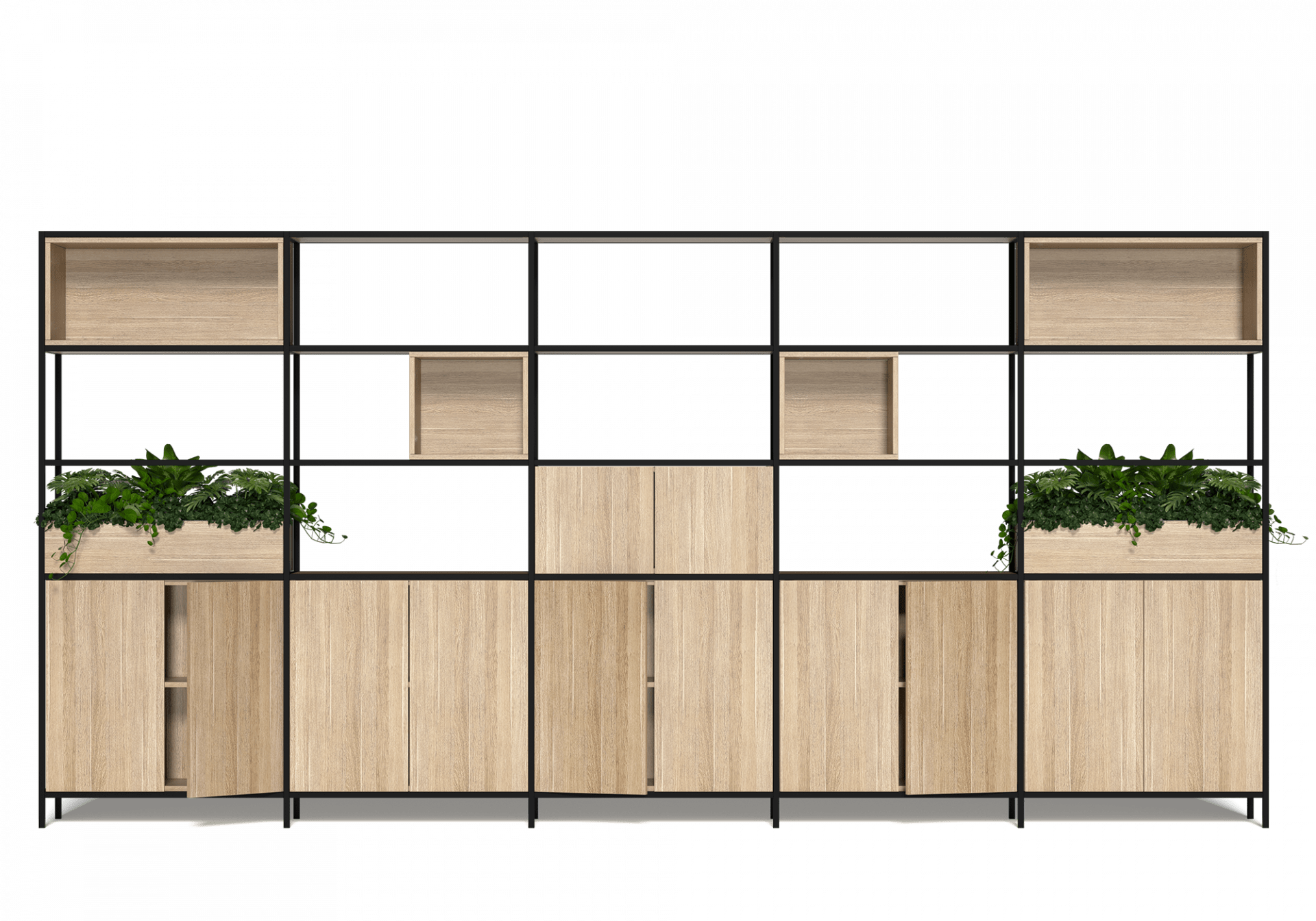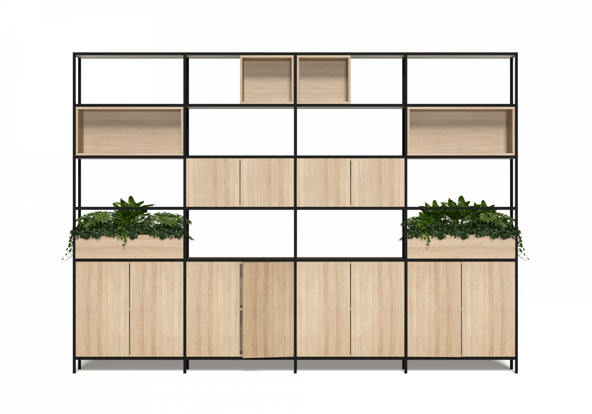 Modular system — units combine freely to create any configuration from a single bay to full room dividers