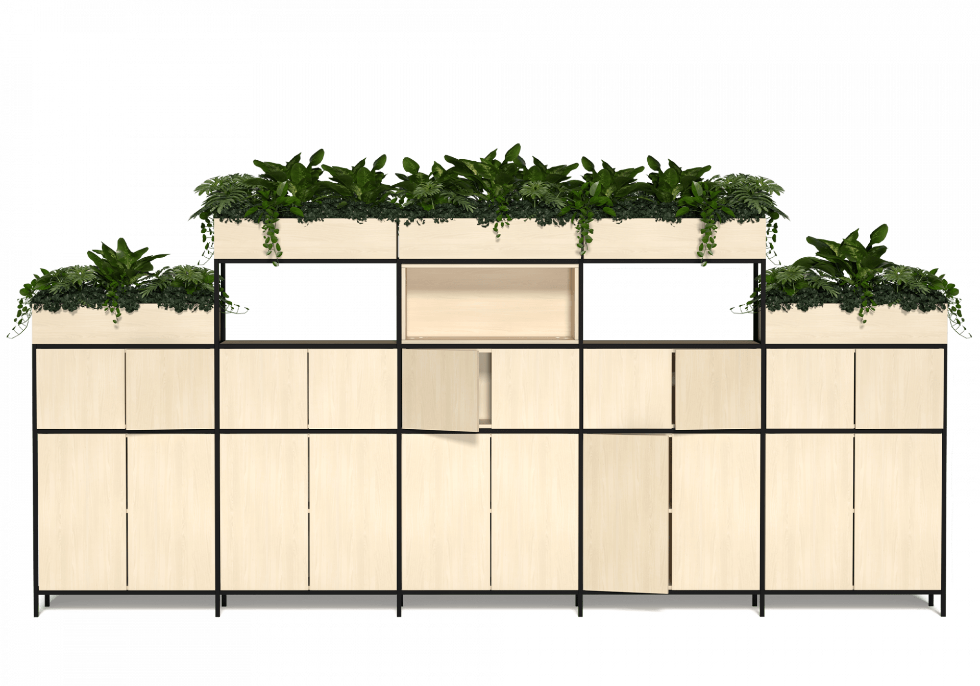Modular system — units combine freely to create any configuration from a single bay to full room dividers