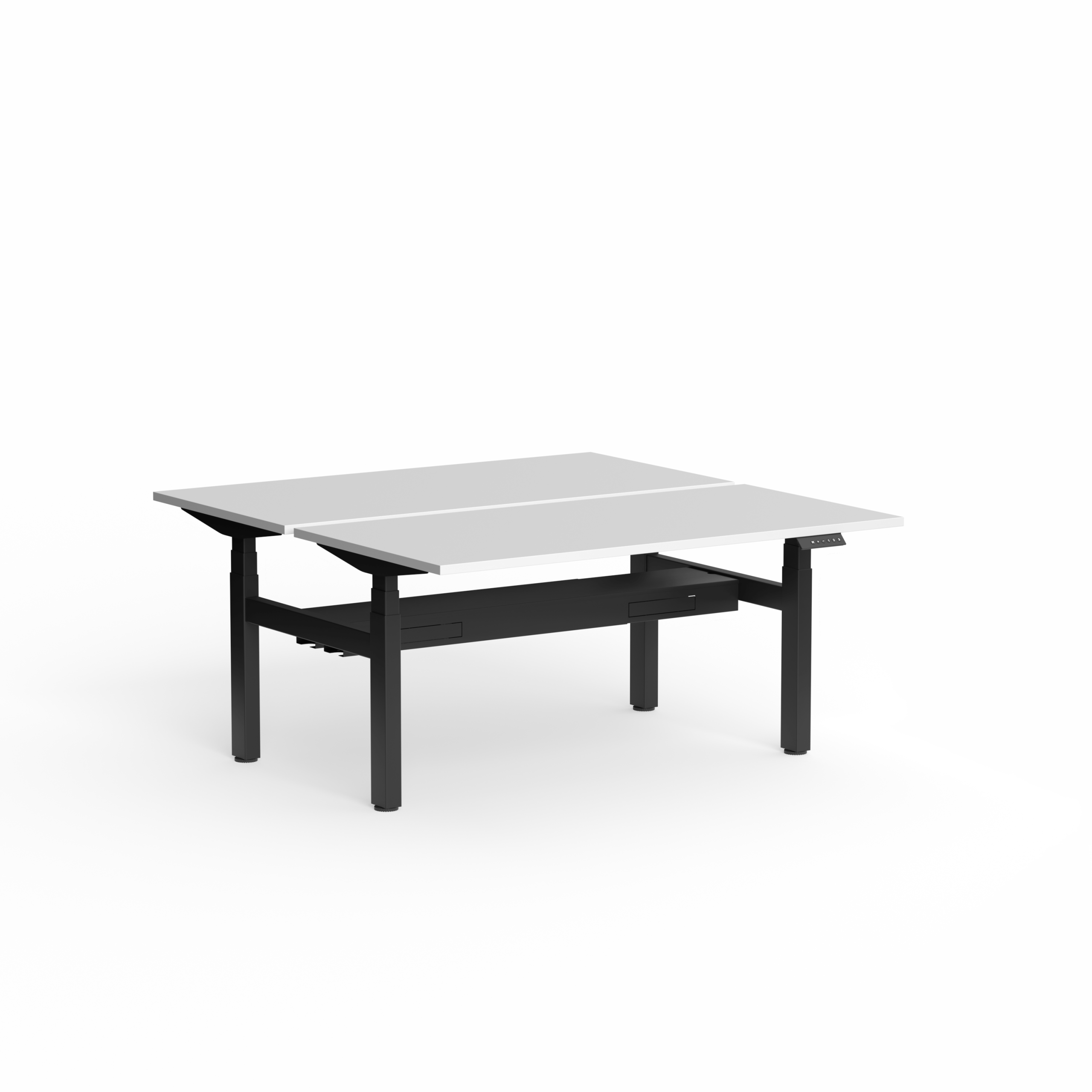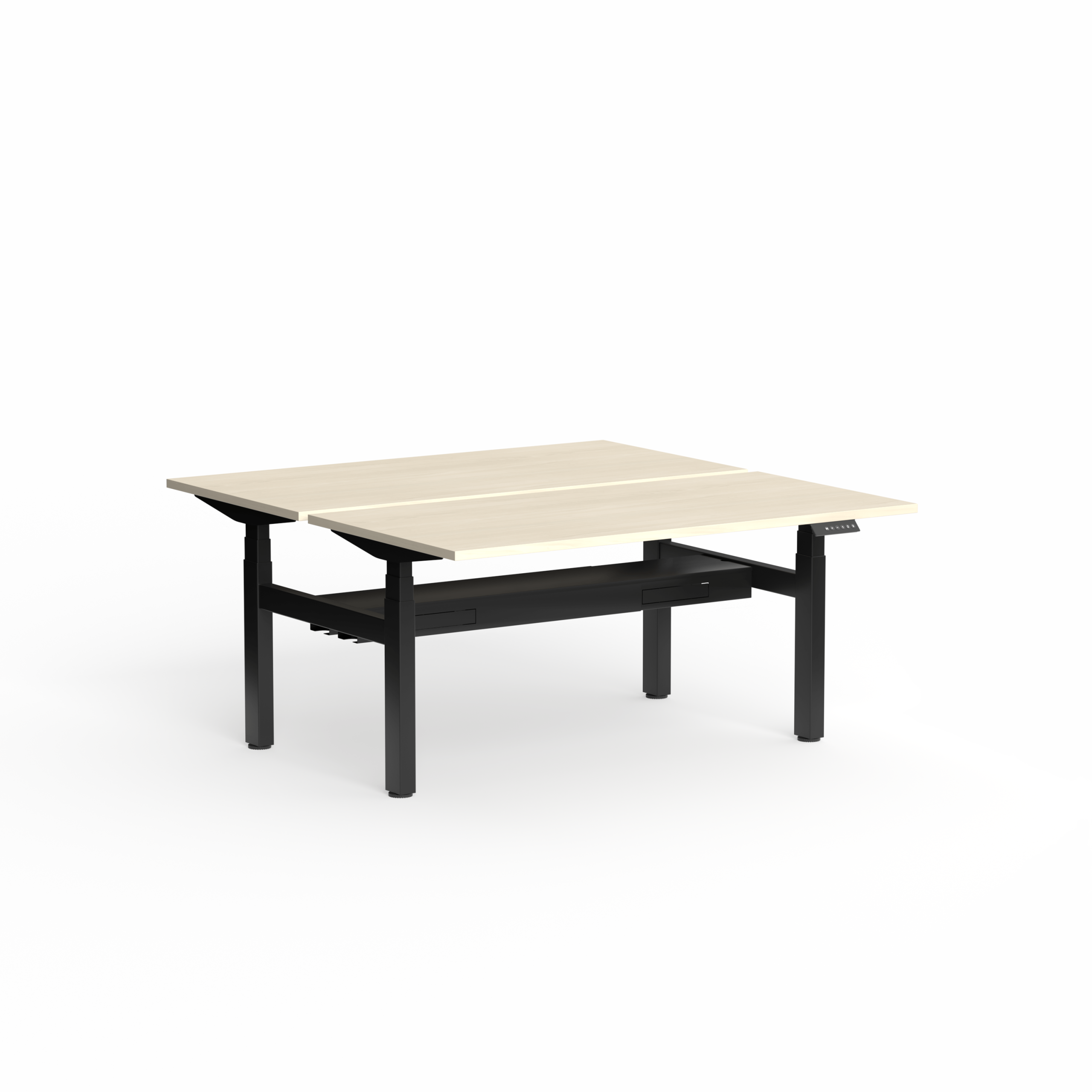 The Klass desk is an electric height-adjustable desking system engineered with precision German technology for the demands of modern Australian workplaces. Featuring concealed dual motors, a 3-point memory control with LCD readout, anti-collision sensitivity, and integrated cable management, Klass delivers uncompromising ergonomic performance in a sleek, premium form. This 2-user back-to-back configuration with each user having full independent sit-stand control. delivers a Double-sided 2-user pod arrangement.