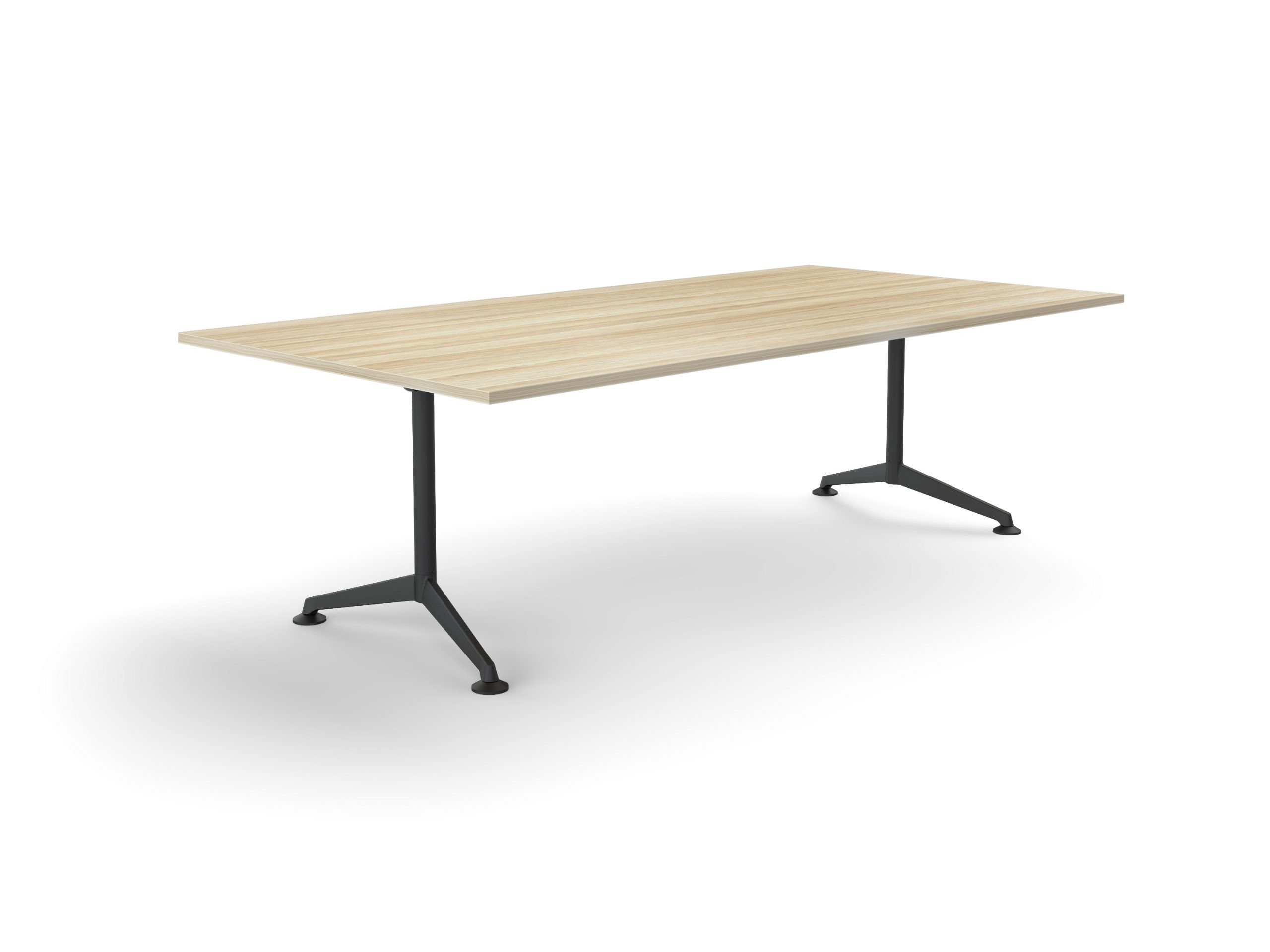 The Modulus meeting table range is an Australian classic that embodies timeless simplicity and universal strength. The Modulus Boardroom Table Single Span Twin Post is a classic boardroom configuration using twin post legs with a single span worktop, delivering strength and stability for executive boardrooms and large meeting spaces. The distinctive A-shaped rail and socket system locks tables together securely while providing exceptional strength. Available in multiple sizes with a comprehensive suite of power box and worktop options.