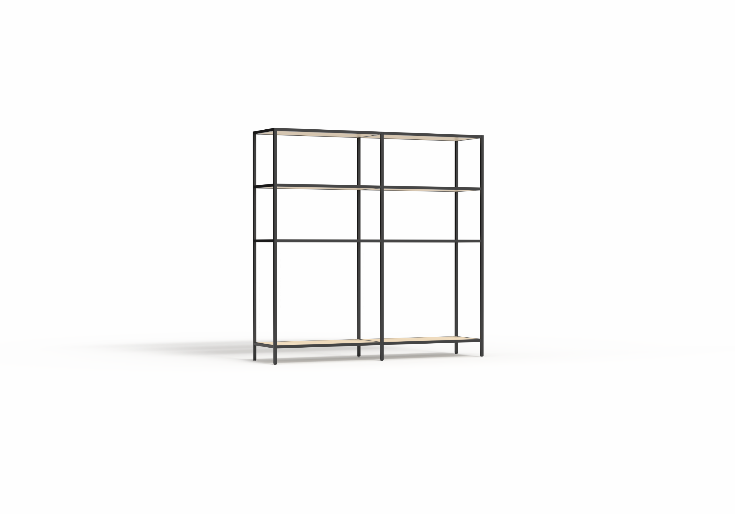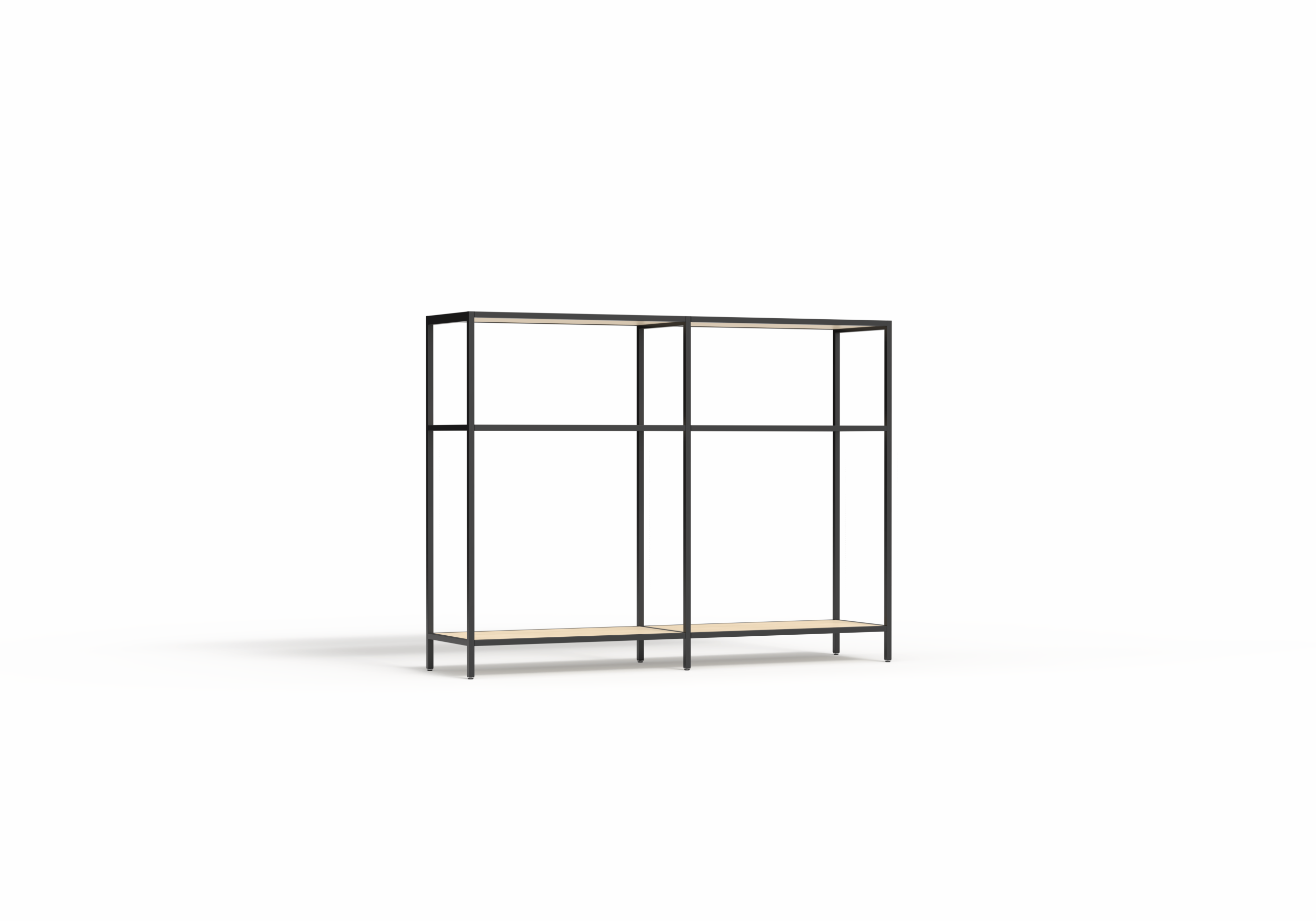 The Rhodes Modular Shelving system is a premium open shelving solution designed for effortless assembly and limitless reconfiguration. Engineered to create dynamic, functional zones with a light-filled, open feel, Rhodes empowers designers and facilities managers to define space, integrate natural elements, and transition seamlessly between work, storage, and display functions. This 2-bay configuration provides a 1680mm wide shelving run available in 2000mm or 2400mm heights to suit standard or high-ceiling environments.