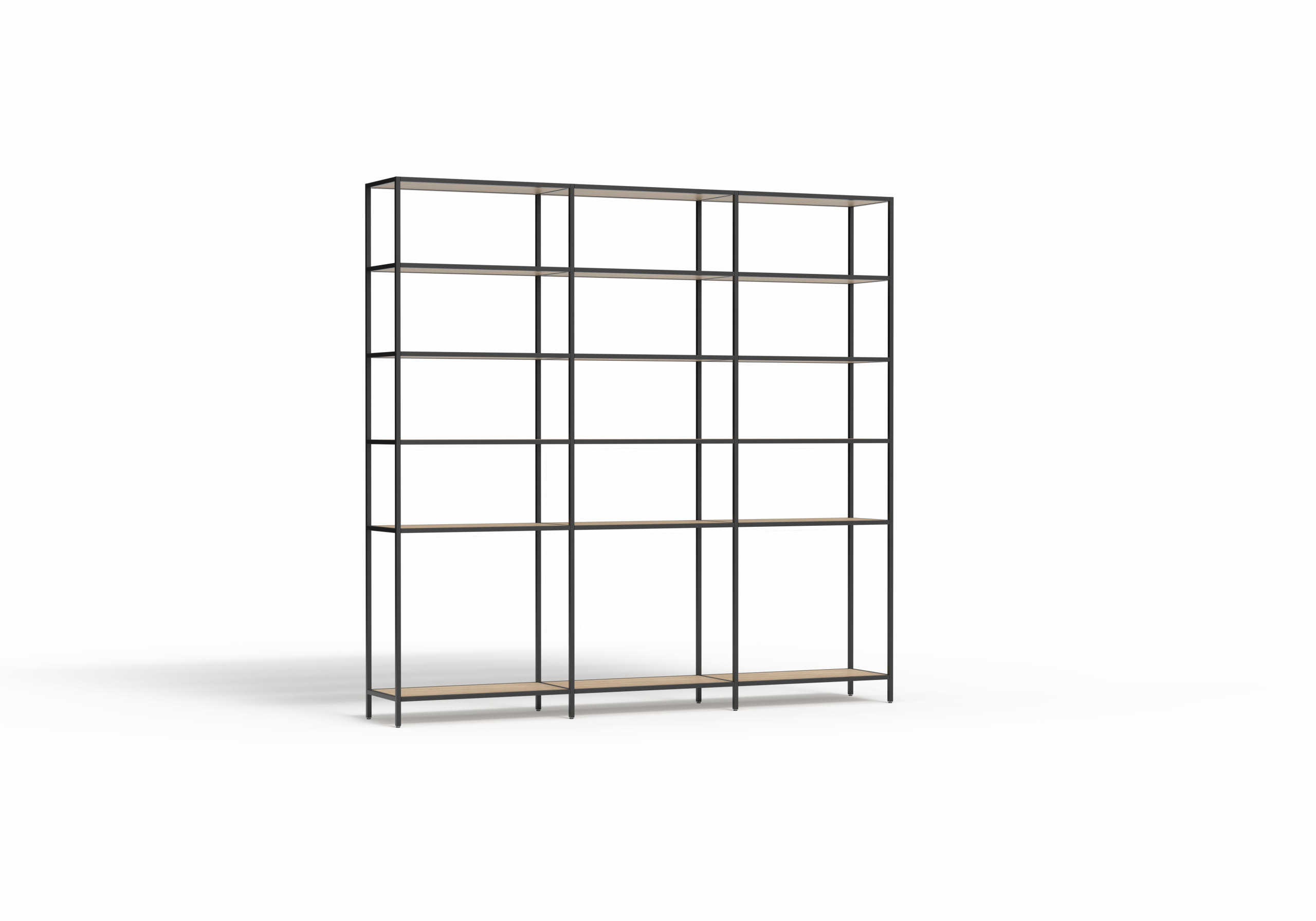 The Rhodes Modular Shelving system is a premium open shelving solution designed for effortless assembly and limitless reconfiguration. Engineered to create dynamic, functional zones with a light-filled, open feel, Rhodes empowers designers and facilities managers to define space, integrate natural elements, and transition seamlessly between work, storage, and display functions. This 3-bay configuration provides a 2520mm wide shelving run available in 2000mm or 2400mm heights to suit standard or high-ceiling environments.
