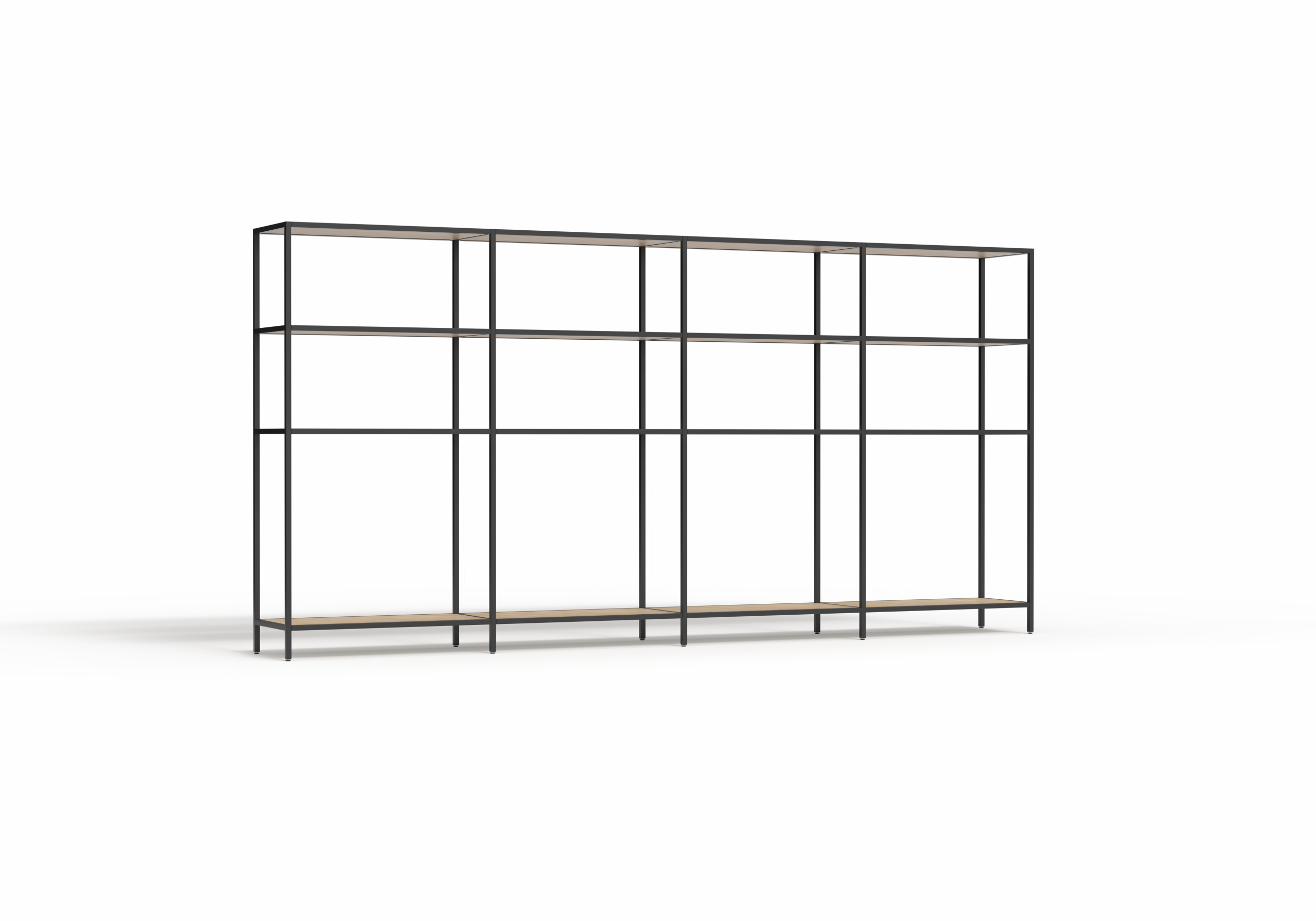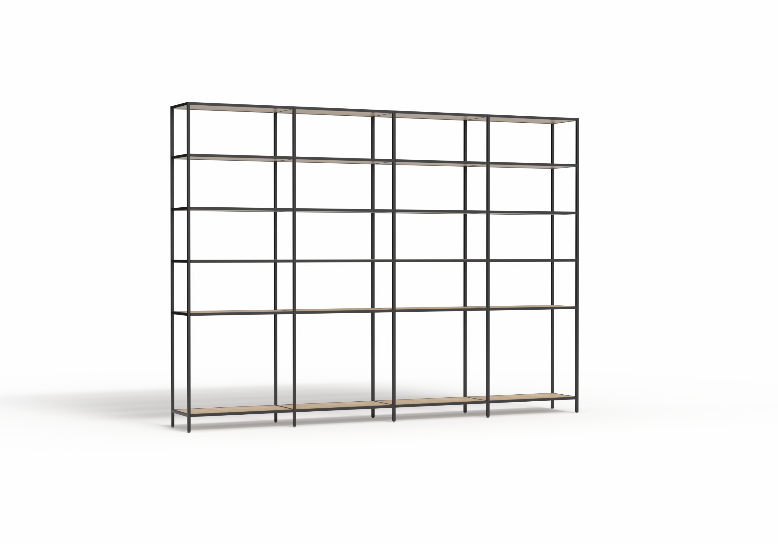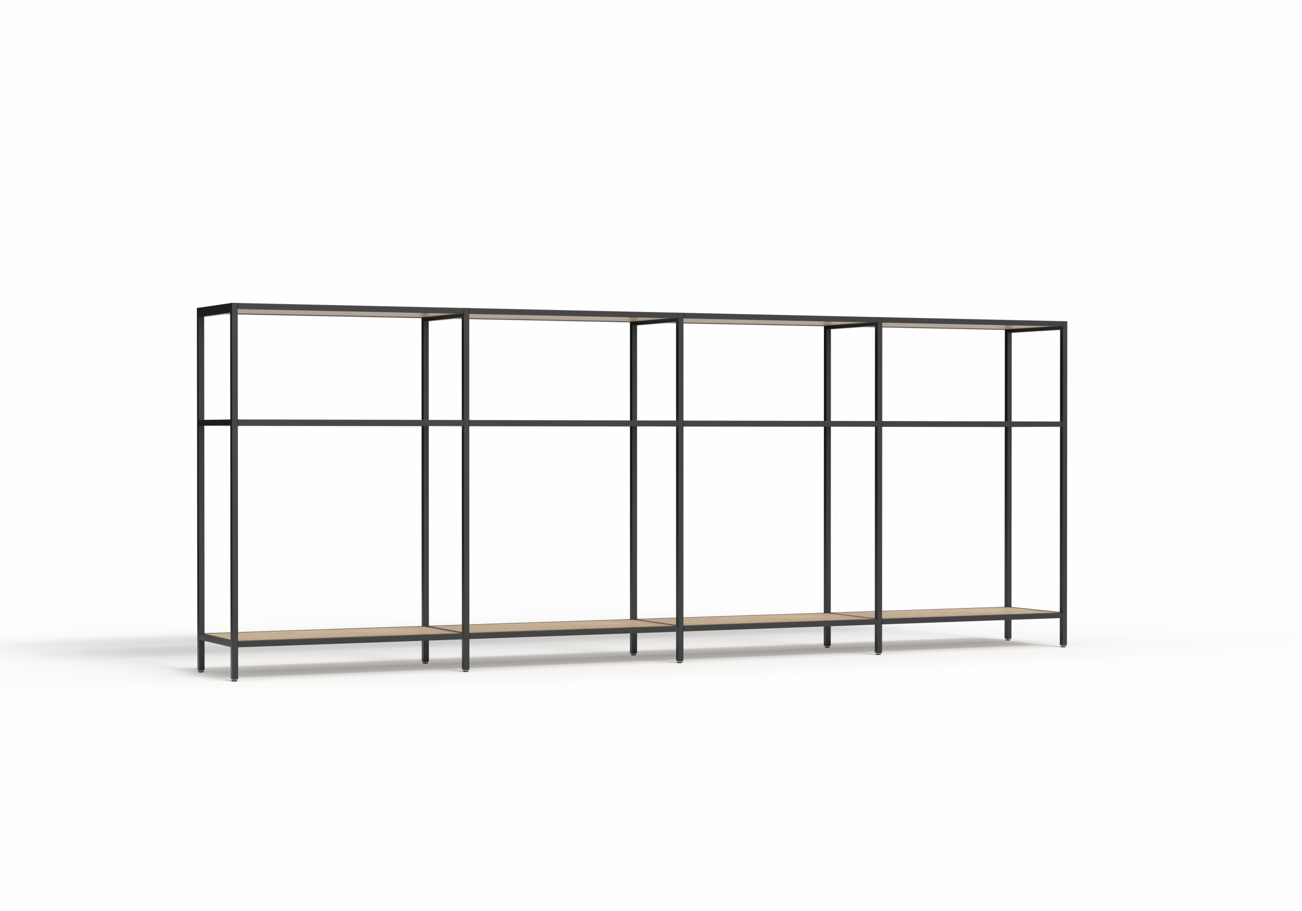 The Rhodes Modular Shelving system is a premium open shelving solution designed for effortless assembly and limitless reconfiguration. Engineered to create dynamic, functional zones with a light-filled, open feel, Rhodes empowers designers and facilities managers to define space, integrate natural elements, and transition seamlessly between work, storage, and display functions. This 4-bay configuration provides a 3360mm wide shelving run available in 2000mm or 2400mm heights to suit standard or high-ceiling environments.