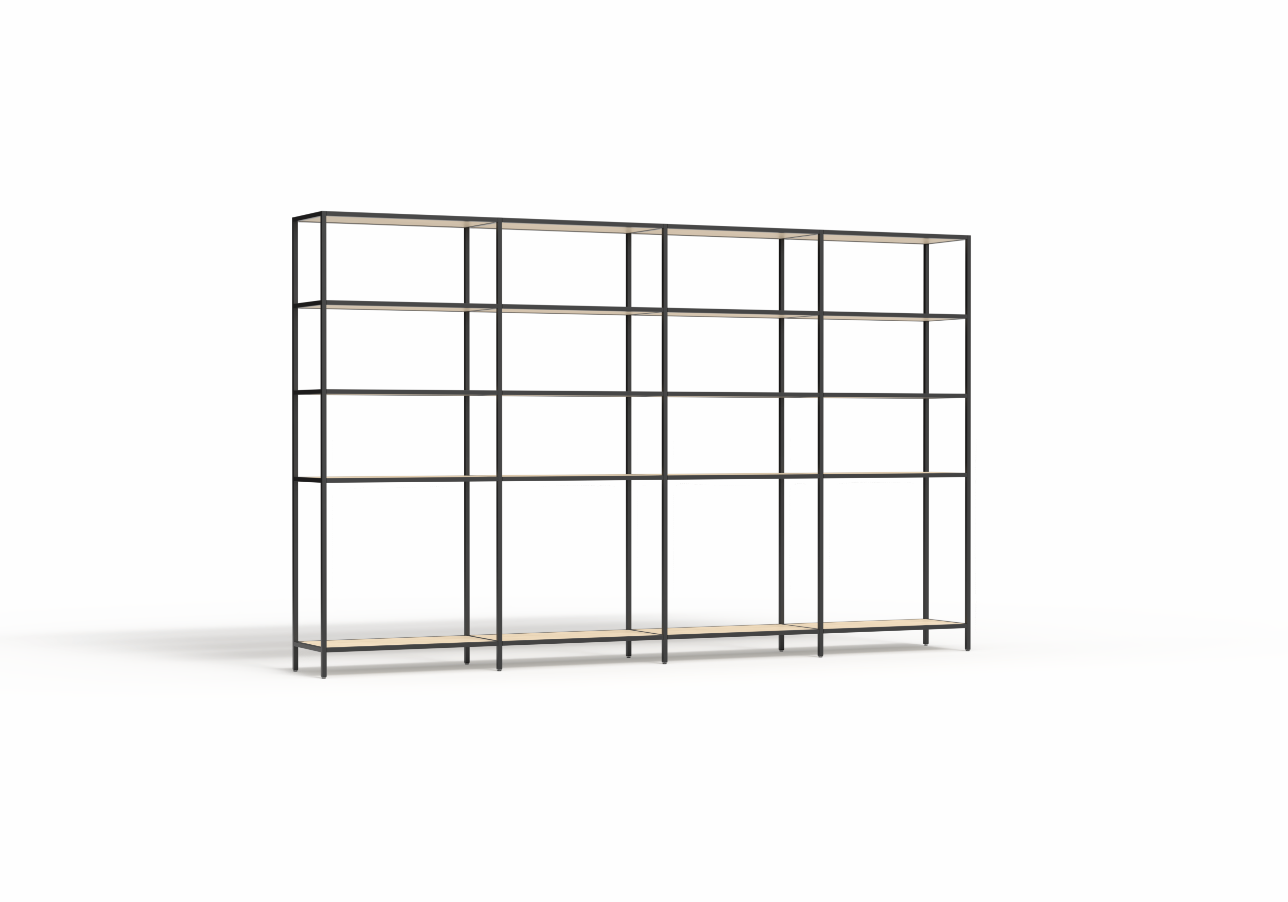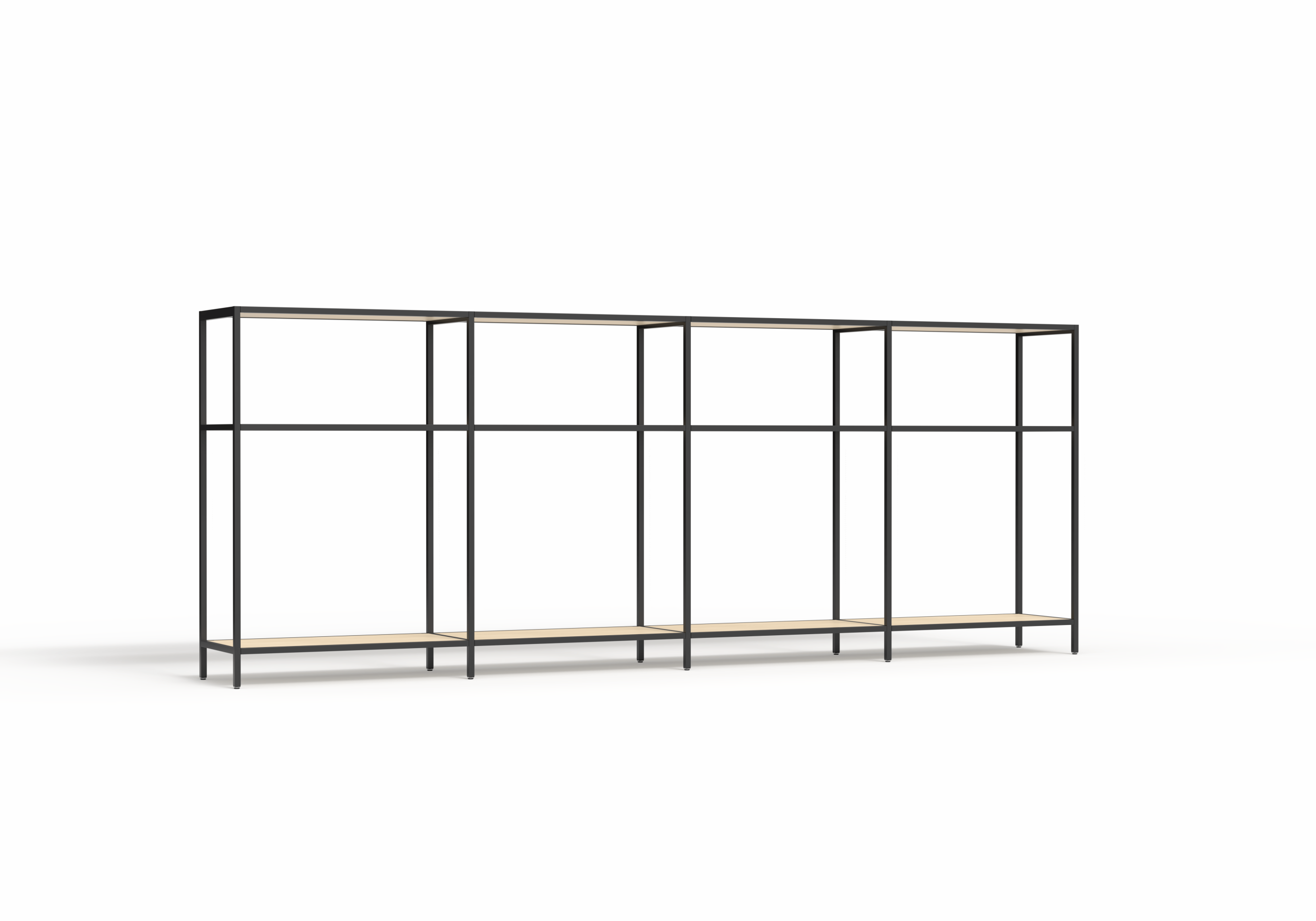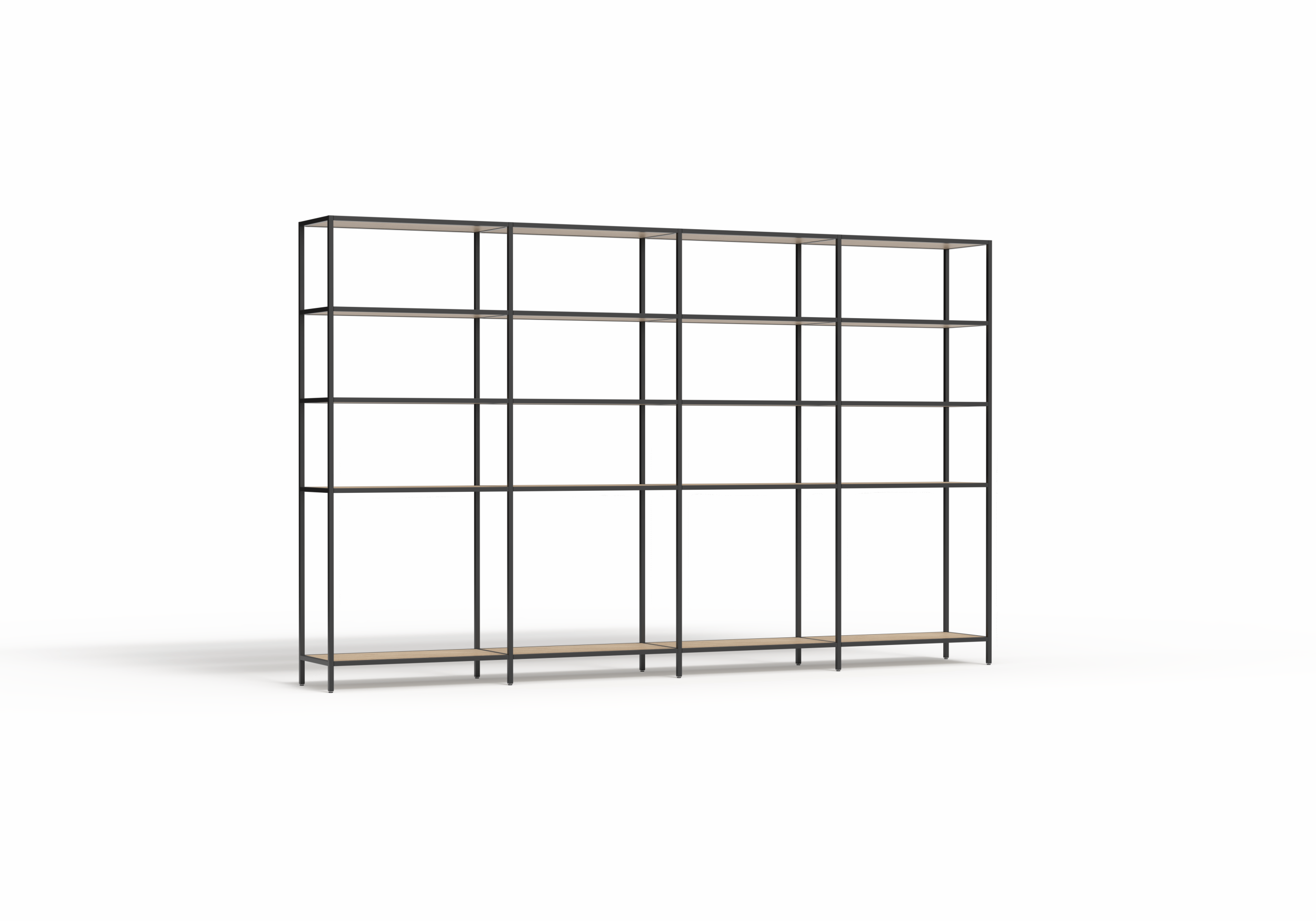 The Rhodes Modular Shelving system is a premium open shelving solution designed for effortless assembly and limitless reconfiguration. Engineered to create dynamic, functional zones with a light-filled, open feel, Rhodes empowers designers and facilities managers to define space, integrate natural elements, and transition seamlessly between work, storage, and display functions. This 4-bay configuration provides a 3360mm wide shelving run available in 2000mm or 2400mm heights to suit standard or high-ceiling environments.