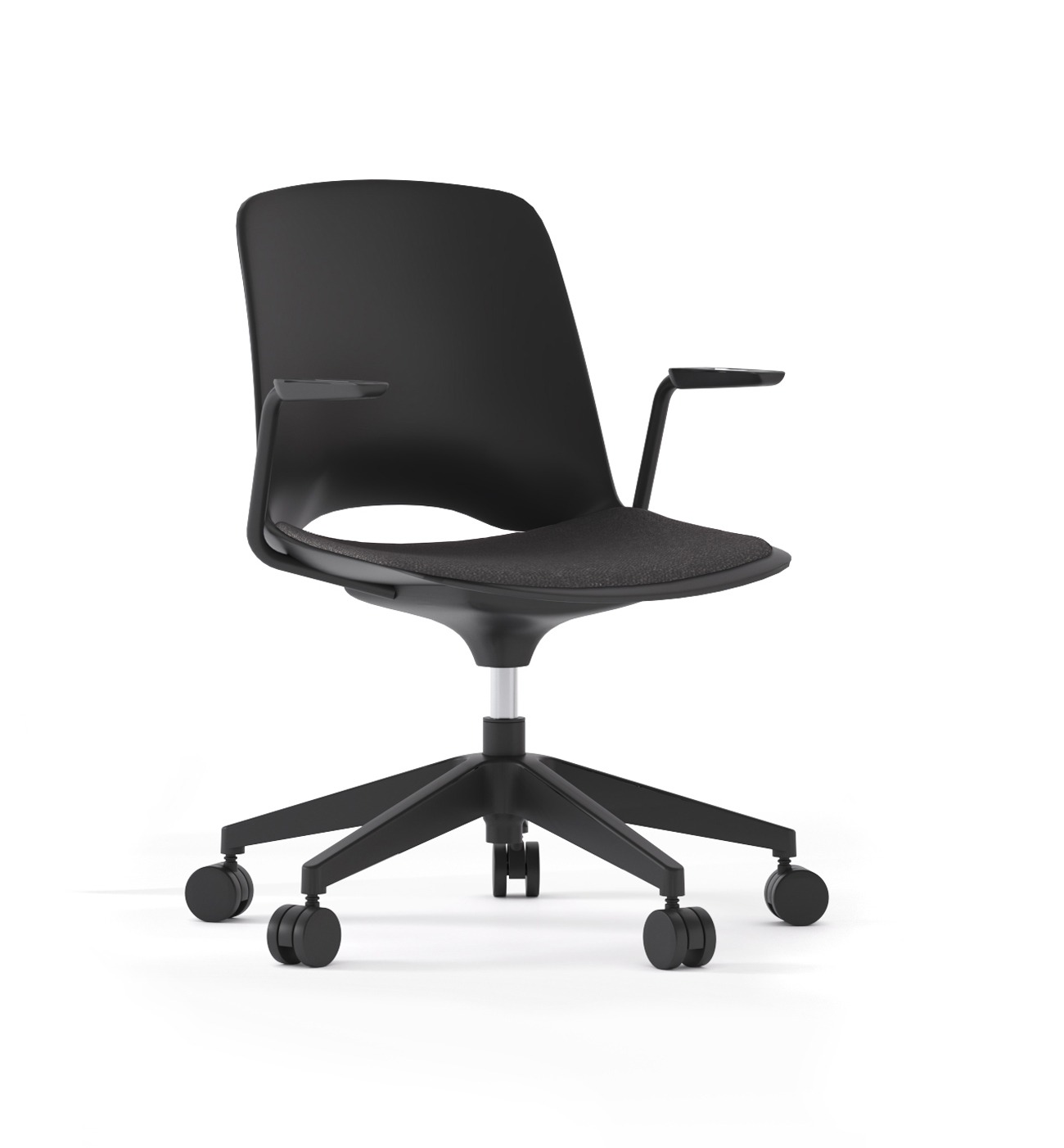 The Vista Swivel Chair is an upholstered 360° swivel chair on a fixed-height base, designed for visitor areas, breakout spaces, and informal meeting environments. Its swivel capability makes it particularly suited to collaborative settings where users need to turn and engage with others.
